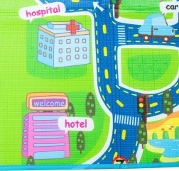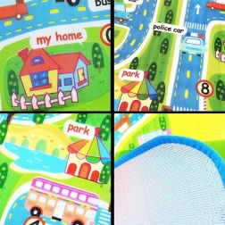 Ce tapis de jeu à face unique avec un motif de ville offre aux enfants un endroit sûr pour jouer. Il isole du froid et protège contre les chocs durs. Le tapis est facile à transporter grâce à sa couche thermo-isolante sur la face inférieure.