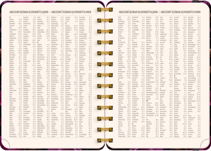 - Contient une liste des prénoms tchèques et slovaques avec les jours de fête.