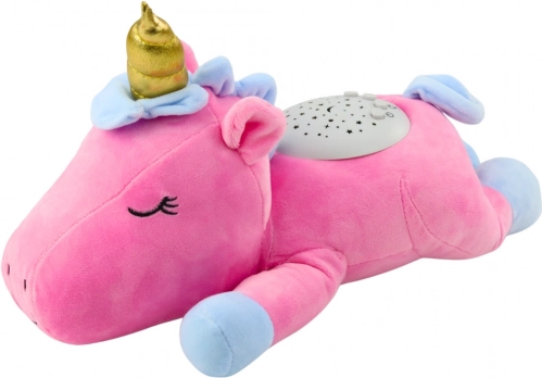 Licorne en peluche rose avec projecteur pour une expérience apaisante et favoriser l’endormissement des enfants.