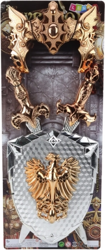 Set de chevalier pour enfants Bouclier avec deux épées et masque Aigle doré