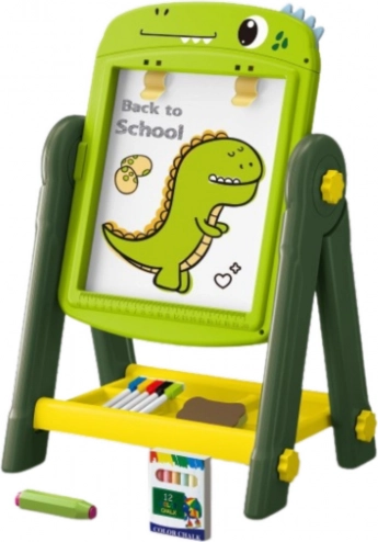 La conception du tableau est pensée pour la sécurité et le confort. Des pieds stables, une base large et une étagère fonctionnelle pour les accessoires assurent un jeu confortable. Un porte-craies pratique réduit le désordre et les mains d’enfants salies.