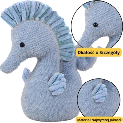 Adorable hippocampe bleu, le compagnon parfait de jeu et de sommeil pour chaque enfant. Confectionné dans un matériau exceptionnellement doux qui invite aux câlins fréquents.
