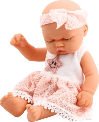 La poupée a des dimensions compactes - environ 24 x 12 cm, ce qui permet une prise en main facile pour les petites mains des enfants tout en s'adaptant à la plupart des landaus et des lits de poupées. La tenue complète composée de la robe rose élégante avec une finition en dentelle délicate et une étoile brodée au centre accompagnée d'un bandeau assorti met en valeur le caractère féminin et délicat du jouet.