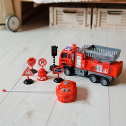 Le feu tricolore, le cône et les panneaux de signalisation enrichissent les possibilités de jeu, tandis que les lumières du véhicule renforcent réalisme et attrait.