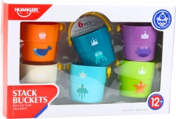 Ce set de seaux colorés est idéal pour l'éveil créatif des enfants dès 12 mois. L'ensemble comprend 6 seaux légers et colorés avec des motifs marins pour empiler et jouer dans le bain.
