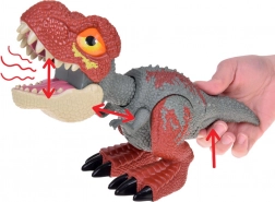 Ce Tyrannosaurus Rex est réalisé avec un souci du détail jusqu'aux moindres détails - des écailles sur la peau aux dents acérées et aux yeux vifs. En appuyant sur un bouton sur la queue, la tête se déplace vers l'avant et la mâchoire s'ouvre, déclenchant des effets sonores réalistes de rugissements de dinosaures, tandis que la lumière rouge de la gueule crée un effet dramatique.