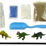 Par où commencer ? Préparez d’abord le substrat selon la notice, semez les graines, arrosez légèrement et assurez un bon éclairage. Avec un peu de patience, votre enfant pourra observer les plantes pousser dans le bocal tout en profitant d’un superbe décor de dinosaures ! La nuit, le bocal offre en plus un éclairage agréable grâce à la lumière intégrée et aux autocollants phosphorescents.