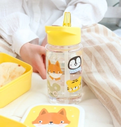 Elle fait partie d’un ensemble complet au même design comprenant une bouteille, un sac à dos et une boîte à goûter. Veuillez noter que la bouteille ne convient pas aux liquides bouillants ou chauds et ne doit pas être utilisée au micro-ondes. L’entretien de la bouteille, du bouchon et de la paille se fait par lavage et séchage manuels. Le lavage au lave-vaisselle n’est pas recommandé.