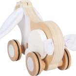 Ce mignon petit lapin en bois massif de haute qualité séduira chaque enfant avec ses oreilles et sa queue douces et bruissantes. Il développe les compétences motrices et encourage les enfants à ramper et à marcher grâce à une ficelle facile à tirer. Les roues caoutchoutées assurent une conduite fluide et silencieuse.