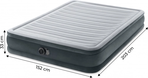 Pratique lit pneumatique pour deux personnes aux dimensions 203 × 152 × 33 cm offrant un gonflage rapide grâce à la pompe électrique intégrée, une surface en velours confortable et une structure interne robuste Fiber‑Tech. Grâce au système Dura‑Beam, il assure un soutien correct de la colonne vertébrale, une grande stabilité et une capacité de charge jusqu’à 272 kg. Inclus une housse de transport pour un déplacement et un rangement faciles.