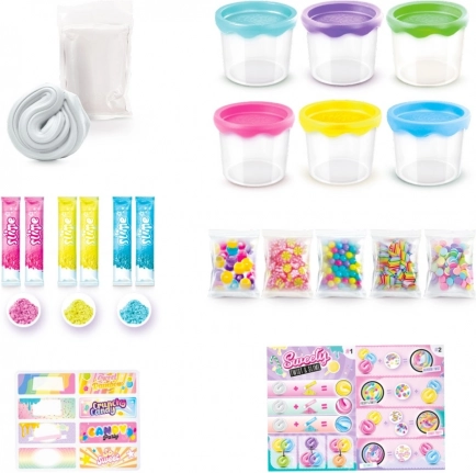 Avec ce set, les talents créatifs de vos enfants seront pleinement développés. Mélangez différentes poudres de couleur, ajoutez des décorations et regardez tout se transformer en un slime ludique et éclatant ! Ce coffret contient tout le nécessaire pour des heures de jeu :