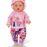 Avec cet ensemble, vous offrez à la poupée et à l’ourson BABY born Teddy confort et style pour chaque aventure. Le sweat rose zippé avec capuche et adorables oreilles s’enfile facilement, le t-shirt lavande à manches longues avec ourson est tout doux et le pantalon au motif patchwork coloré garantit le confort pendant le jeu.