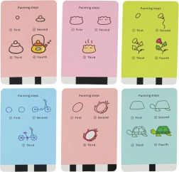 Le robot tient le feutre et dessine sous vos yeux selon la carte choisie. Les enfants suivent les étapes, apprennent les formes et les proportions, puis colorient eux-mêmes l’illustration.