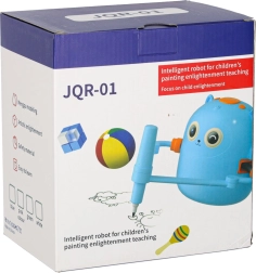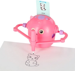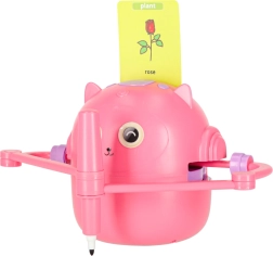 Nous misons sur la simplicité et le plaisir d’apprendre. Il suffit d’insérer une carte illustrée, de fixer le feutre dans la main du robot et d’observer l’image se créer étape par étape. L’enfant peut ensuite colorier l’illustration et entraîner sa motricité fine, sa patience et sa concentration. Des consignes vocales interactives en anglais enrichissent naturellement le vocabulaire.