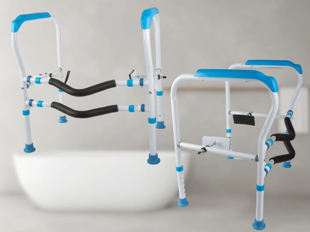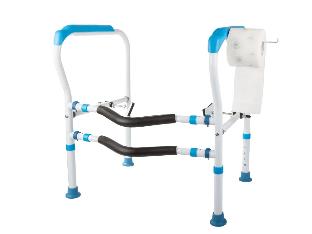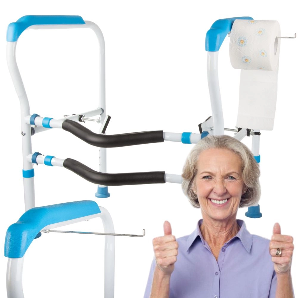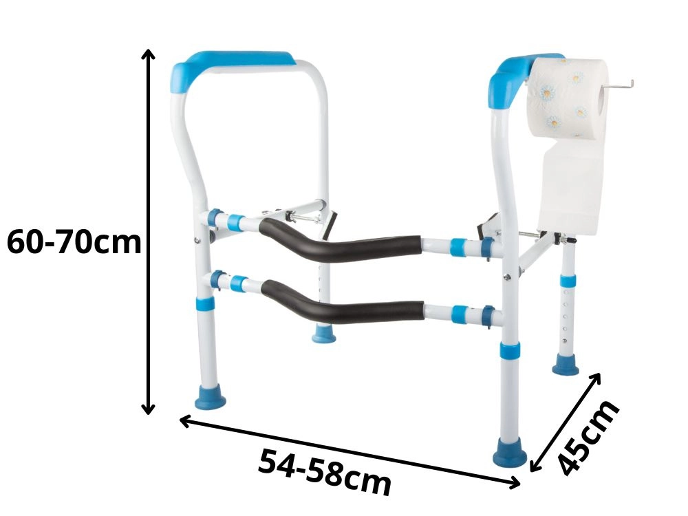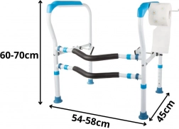 Nous vous proposons une poignée de WC universelle avec hauteur et largeur réglables, idéale pour différentes tailles de toilettes. La conception assure une stabilité et une sécurité d'utilisation grâce aux pieds et poignées antidérapants.