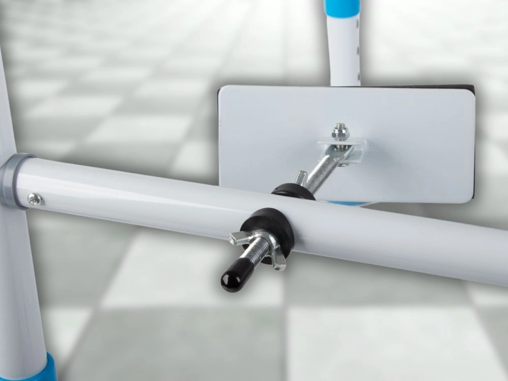 Le cadre métallique robuste assure la solidité et la durabilité. Les poignées antidérapantes augmentent le confort, tandis que les pieds stabilisent la poignée au sol.