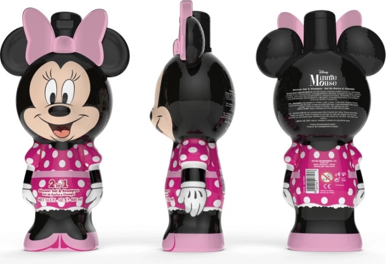 Gel douche et shampooing 2-en-1 Minnie d’un volume de 400 ml, parfait pour les jeunes enfants. Nettoie en douceur la peau et les cheveux, les laissant frais et hydratés.