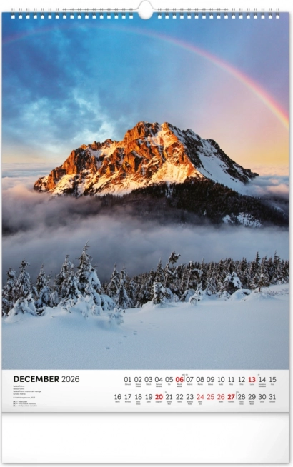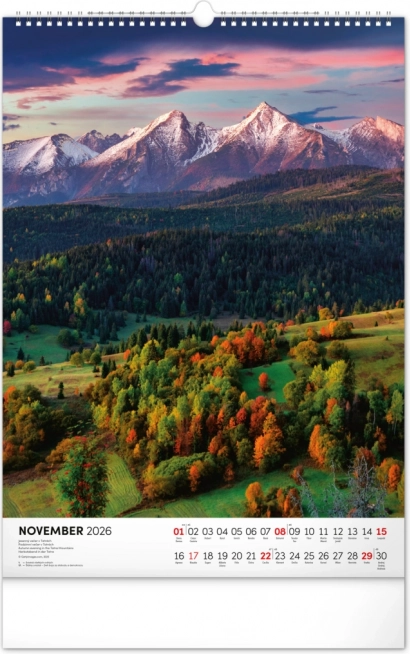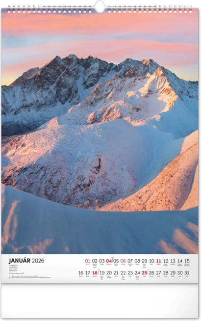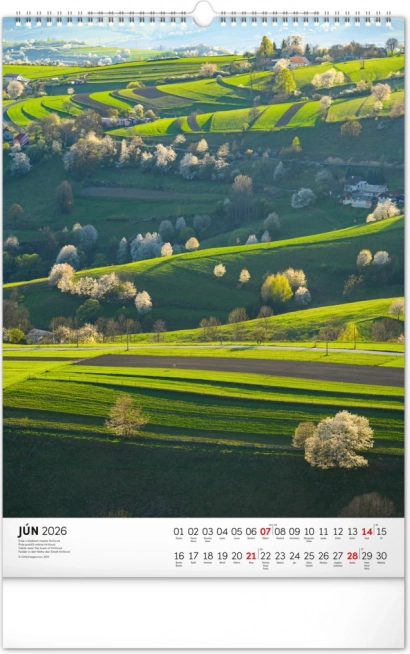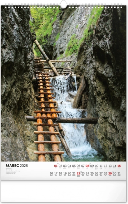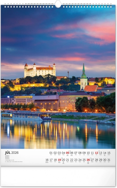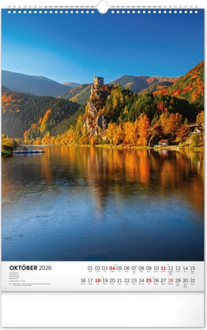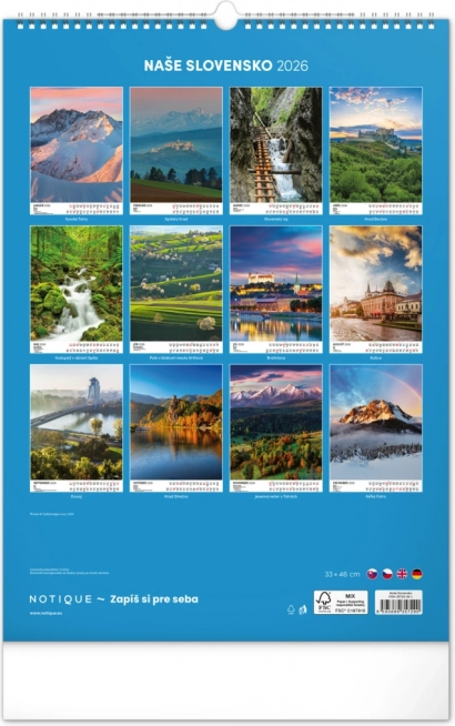 Calendrier mural Notre Slovaquie 2026 avec photos et calendrier slovaque. Idéal pour les amoureux des beautés de la Slovaquie.
