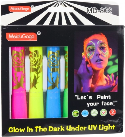 Kit de peinture néon pour visage marqueurs fluorescents UV 6 pièces