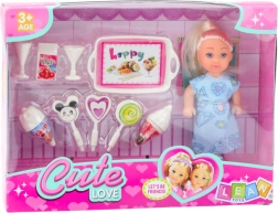 L’ensemble comprend une poupée de 12 cm vêtue d’une robe bleue avec des imprimés adorables et des accessoires thématiques tels que des sucettes, des glaces, des cornets et un plateau avec des rafraîchissements. Ces accessoires non seulement enrichissent le jeu, mais favorisent aussi le développement de l’imagination, des habilités manuelles et des compétences sociales de l’enfant.