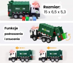 Camion à ordures interactif "Purifier" à l'échelle 1:10 est un excellent jouet qui apporte des expériences amusantes et éducatives. Des détails réalistes, des éléments mobiles et des fonctions lumineuses et sonores assurent une éducation captivante sur le tri des déchets.