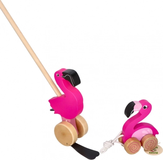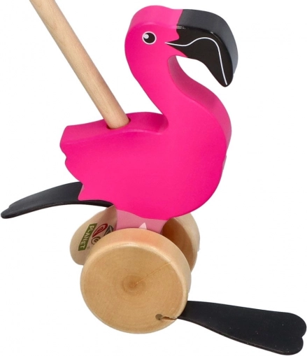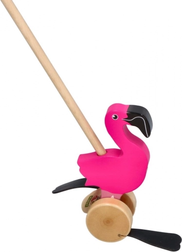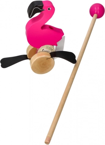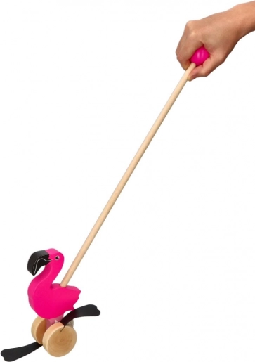 Le flamant rose en bois sur tige est un compagnon idéal pour les premiers pas. Grâce à ses roues lisses et à sa structure stable, il se pousse facilement, tandis que les éléments mobiles créent un effet amusant qui motive les enfants à marcher et à explorer.