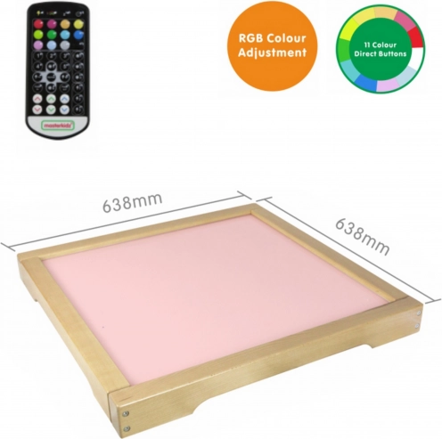 Le panneau lumineux LED de MASTERKIDZ est un boîtier solide en bois avec rétroéclairage LED, pouvant être personnalisé à l’aide d’une télécommande. L’utilisateur peut régler le panneau sur l’une des 11 couleurs préréglées ou modifier la lumière manuellement en combinant les couleurs de base : rouge, vert et bleu.