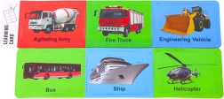 Le set comprend également des cartes éducatives colorées avec des illustrations, qui enrichissent le jeu et ajoutent une dimension pédagogique – les enfants découvrent ainsi le monde des véhicules de manière ludique. L’ensemble est emballé dans une boîte attrayante avec fenêtre transparente.