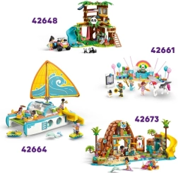 Ce set enchanteur de la ville de Heartlake invite à explorer les fleurs et l’amitié. Les enfants peuvent servir les clients dans le fleuriste, préparer des gourmandises dans le café avec cuisine et répandre la bonne humeur avec un tramway stylé. Quatre personnages (Aliya, Esme, Olly et Nova) et un chat élargissent les possibilités de jeu et encouragent les compétences sociales et l’empathie.