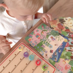Le jeu est destiné aux enfants à partir de 3 ans et comprend une tablette en bois pour indiquer les chiffres ainsi que 20 cartes sur le thème de la forêt pour compter les animaux, avec les réponses au verso. Les enfants peuvent jouer en autonomie, s’entraîner à compter et enrichir leur vocabulaire en tchèque et en anglais.