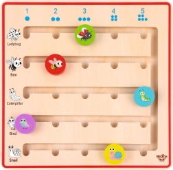 Le jeu en bois de Tooky Toy aide les enfants à apprendre à compter de manière ludique. Grâce au thème forestier, les enfants plongent dans l’univers des animaux, tels que la coccinelle, l’oiseau, l’escargot, la chenille et l’abeille, qui les accompagneront tout au long du jeu. Le fabricant veille à l’utilisation de matériaux de qualité et écologiques pour maximiser la sécurité des enfants et protéger l’environnement.