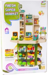 Transformez la chambre de votre enfant en un supermarché réaliste avec le jouet interactif Supermarché frais. Cet ensemble de 67 pièces comprend des imitations d’aliments, de boissons, d’emballages, de légumes et de fruits, une caisse avec boutons, un lecteur de codes, un terminal et des étagères d’exposition, permettant à l’enfant de devenir vendeur ou client.
