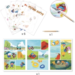 La bande dessinée à compléter Flying Sofye de la marque Djeco est un cadeau idéal pour les enfants aux talents multiples qui aiment dessiner et raconter des histoires. Le coffret comprend :