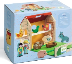 Cette ferme finement réalisée stimule l’imagination, la motricité fine et la capacité de raconter des histoires. À l’ouverture, on découvre le poulailler et l’étable, avec un pré à l’extérieur pour tous les animaux. La planche du poulailler peut être tirée pour se transformer en toboggan, sur lequel les figurines glissent joyeusement.