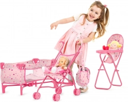 Le set pour poupées Trixy 3‑en‑1 de Chipolino offre une solution complète pour les petites personnes attentionnées. Le set comprend une poussette canne, une chaise haute, un lit, un sac à langer et un sac de transport. Tous les éléments sont conçus pour être légers et pliables afin de faciliter le transport et le rangement :