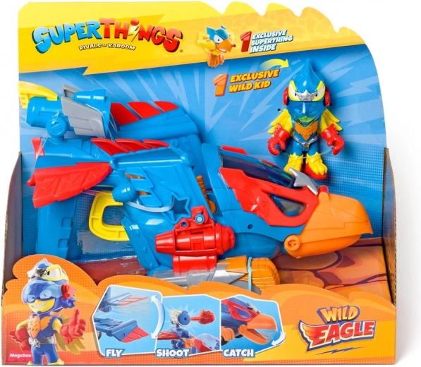 Plongez dans un monde d’aventures avec un Kid exclusif et un SuperThing exclusif, qui peuvent voler dans le cockpit du Jet Wild Eagle. Les ailes mobiles ajoutent au réalisme, tandis que la rotation de la gâchette promet d’abattre les méchants ou de les capturer dans le bec.