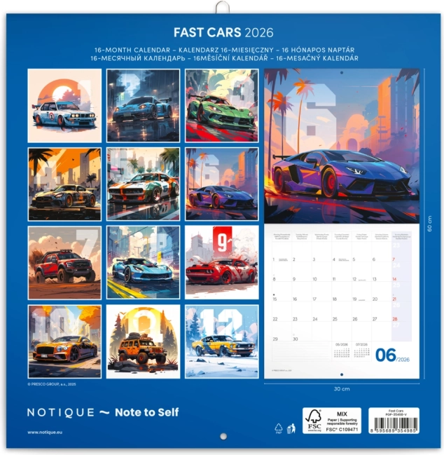 Avec le calendrier bloc-notes Voitures fantastiques 2026, plongez chaque mois dans l’univers des voitures les plus fantastiques. Il comprend un calendrier en six langues et un espace pour des notes pour chaque jour.