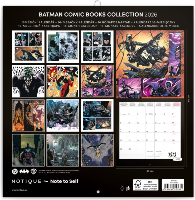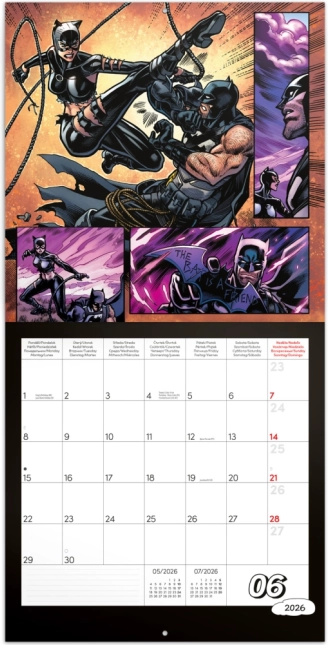 Calendrier à notes Batman Comics 2026 avec des illustrations iconiques de Gotham City. Idéal pour les fans de Batman.