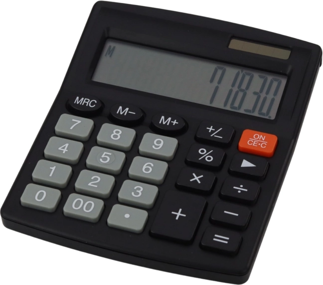 L’appareil est doté des fonctions de base telles que l’addition, la soustraction, la multiplication, la division, le calcul des pourcentages, ainsi que des fonctions mémoire (MRC, M-, M+). La calculatrice fonctionne avec une double alimentation – solaire et pile – garantissant une utilisation longue et sans souci sans remplacement fréquent de la source d’énergie.
