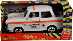 Nouveauté de la collection Retros sauveteurs, cette ambulance à friction est conçue dans un design rétro blanc de secours. La voiture est équipée de: