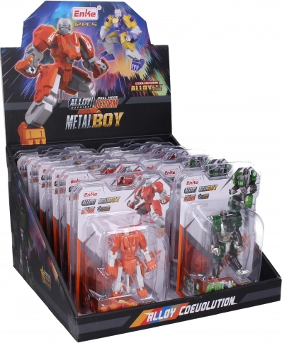 Ce modèle de robot en métal aux dimensions 4,5 x 6,5 x 9 cm est un excellent exemple de jouet moderne, capable à la fois de divertir et d’inspirer par ses possibilités. Avec un présentoir de 12 pièces et en quatre variantes attrayantes – orange, bleu, vert et jaune – vous pouvez choisir votre design préféré.
