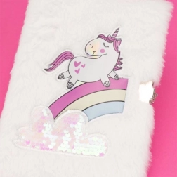 Le carnet possède une couverture extra douce et duveteuse, ornée d’une licorne irisée et de paillettes réversibles nacrées. Ce look unique est idéal pour celles et ceux qui aiment les accessoires magiques et colorés.
