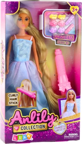 Le set comprend un fer à friser rose et huit barrettes colorées, permettant à l’enfant de coiffer les longs cheveux blonds de la poupée selon ses envies. Anlily a les bras et les jambes articulés, ce qui facilite les mises en scène de mode et l’univers de la beauté.
