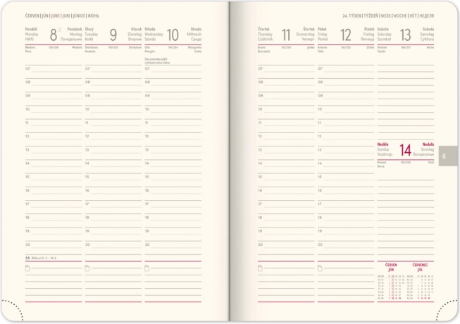 - Vue hebdomadaire avec calendrier tchéco-slovaque et prise en charge de l’anglais, de l’allemand, du hongrois et du russe.