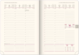 Cet agenda hebdomadaire allie style et fonctionnalité grâce à son design bleu et doré à effet métallisé et au millésime embossé. Il dispose d’éléments pratiques tels que coins arrondis, passant pour stylo et élastique de fermeture, assurant un usage confortable. L’agenda comprend une mise en page avec calendrier tchéco‑slovaque ainsi que d’autres langues comme l’anglais, l’allemand, le hongrois et le russe.