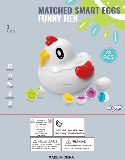 Le poulet trieur coloré de la marque WOOPIE est un jouet éducatif multifonction qui développe chez l’enfant des compétences clés par le jeu. Il comprend un ensemble d’œufs-jouets que l’enfant doit insérer correctement dans les ouvertures correspondantes, apprenant ainsi la reconnaissance des formes et des couleurs et développant sa déxtérité manuelle.