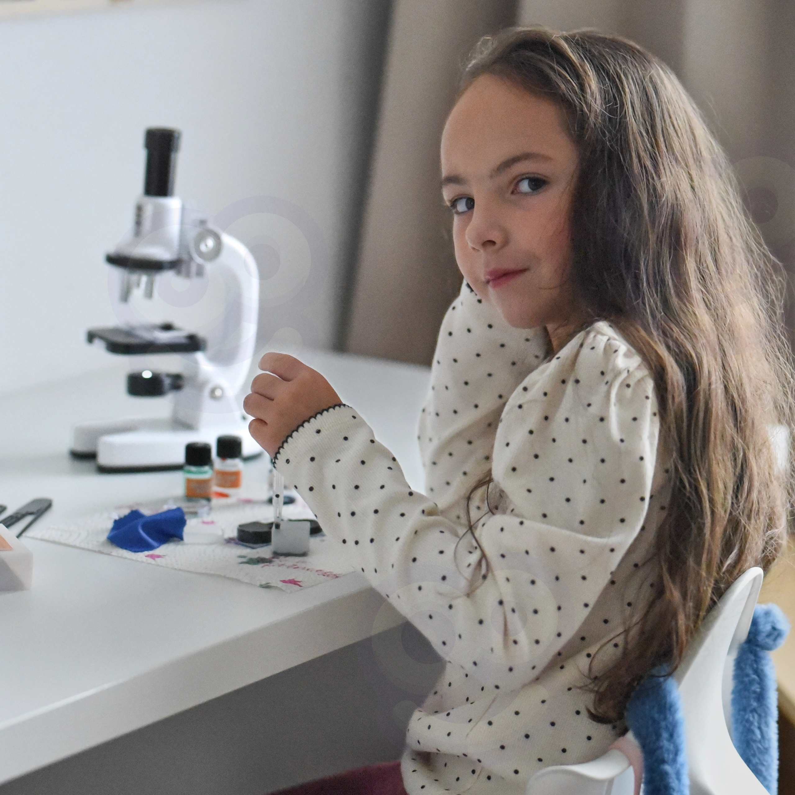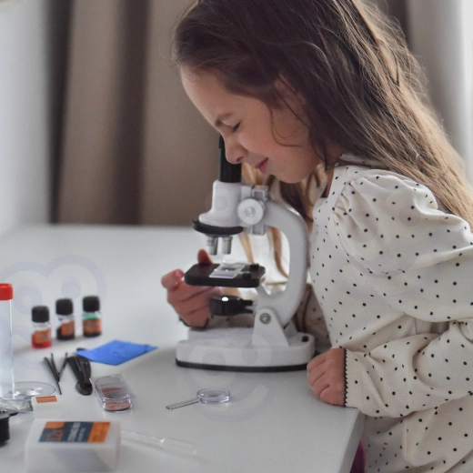 Un adaptateur pour smartphone est inclus, ce qui permet de photographier et partager facilement les observations. Le riche ensemble d’accessoires (lames, flacons, pince, pipette et plus) favorise des expériences sûres et ludiques et développe les compétences scientifiques, la patience et la coordination œil-main.