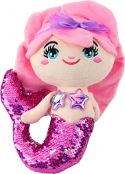 Ce jouet a de grands yeux brodés, un visage souriant, des cheveux roses décorés d'un nœud et une queue élégante recouverte de sequins. Les sequins changent de couleur de violet à argent lorsque vous les caressez de la main, ce qui procure de la joie aux enfants et stimule leur toucher et imagination.