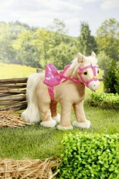 Amusez-vous avec BABY born Mon petit cheval qui marche, qui hennit avec enthousiasme et se met en mouvement. Il suffit d’appuyer sur son oreille droite pour qu’il émette des sons, et sur la gauche pour qu’il commence à marcher. Le cheval préfère courir sur une surface plane et lisse, et vous entendez le bruit de ses sabots.