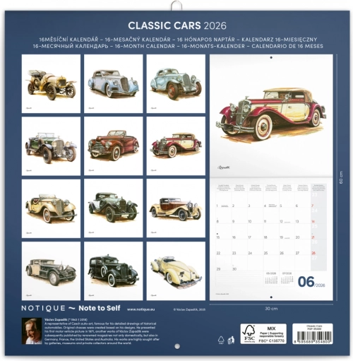 Profitez de douze dessins uniques d’automobiles historiques réalisés par le mondialement célèbre Václav Zapadlík. Ce calendrier est un choix idéal pour les collectionneurs et les amoureux de voitures de collection.